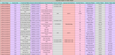 Above Report provides Inquiry Number, Customer Name, Quoted value, Salesman Name, Action taken , Action taken Date, Next action, Next action Date , Updation Date and Remark.