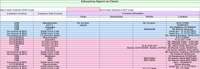 7.Exhaustive Report on clients – This report provides list of all interactions with a particular client including history of all inquiries, Sales people who have interacted with clients and breckup of total business done with consumer.