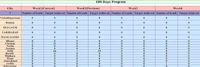 3.100 Days Program Achievement – This report provides the details about the targets achieved across the past 100 days ( ie. 15 weeks) as a total and broken across important cities.