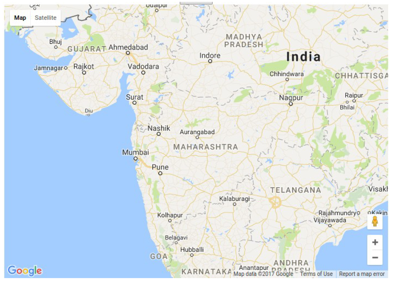 - 2. Click around a region example Pune, to get a fence around it. This way you can define a region. The white dots indicate the polygon points, by dragging which you can expand the region