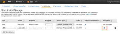Because Amazon Elastic Block Store (Amazon EBS) storage encryption is consistent with HIPAA guidance at the time of this blog writing, the easiest way to fulfill the at-rest encryption requirement is to choose an EC2 instance type that supports Amazon EBS encryption, and then add the encrypted EBS volume to your instance. (See the EBS link for a list of instance types.)