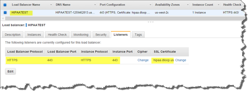 The primary entity that receives the request from Amazon Route 53 is an Internet-facing Elastic Load Balancer. There are multiple ways in which an ELB load balancer can be configured, as explained here. To protect the confidential PHI data, you must enable secure communication options only, like HTTPS-based or TCP/SSL-based end-to-end communication. Although you can use TCP/SSL pass-through mode on the ELB load balancer for your web tier requests, using this option limits the use of some of the HTTP/HTTPS specific features like sticky sessions and X-Forward-For headers. For this reason, many startups prefer to make use of HTTPS-based communication on ELB, as shown in the following screenshot.