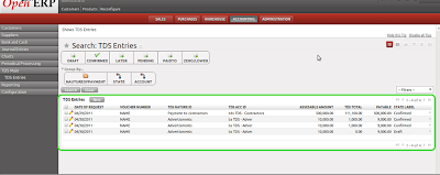 The Tax Deduction at Source (TDS) Module for OpenERP is developed as an important contribution towards the Indian Accounting Localization Project. This TDS Module encompasses all the TDS provisions in compliance with the Income Tax Act, 1961. This feature rich TDS module makes it apt for use by the