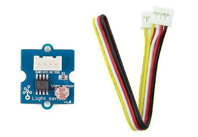The Grove – Light sensor module uses GL5528 photoresistor(light dependent resistor) to detect the intensity of light in the environment. The resistance of photoresistor decreases when the intensity of light increases. A dual OpAmp chip LM358 on board produces voltage corresponding to intensity of light(i.e based on resistance value). The output signal from this module will be HIGH in bright light and LOW in the dark. This module can be used to build a light controlled switch i.e switch off lights during day time and switch on lights during night time.