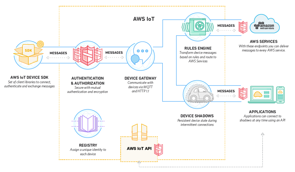 AWS IoT is a managed cloud service that lets connected devices — cars, light bulbs, sensor grids and more — easily and securely interact with cloud applications and other devices.