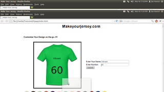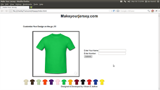 In this application the technology stack which we will be using is HTML5, CSS3 and Javascript, all of which are very easy to learn and understand with a minimum of brain efforts. This application allows the user to customize the given t-shirts and allows him to create his jersey with his own name and number. Also we can save the same and can utilize it say for example, use the customized jersey image as a desktop wallpaper or a mobile wallpaper.