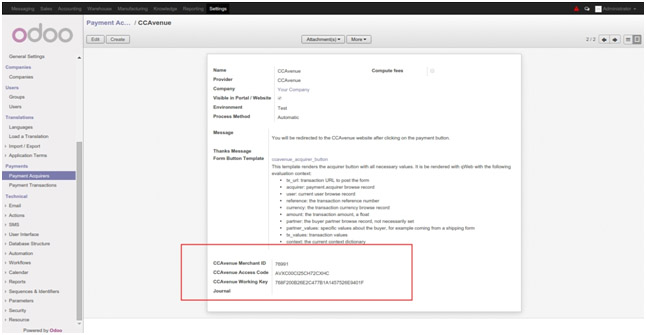 Put your Merchant Key , Access Code and Working key provided by CCAvenue.