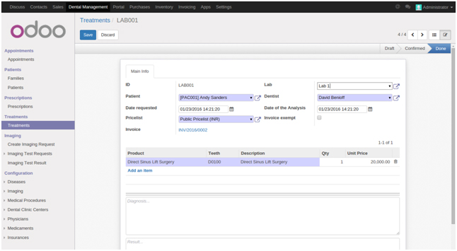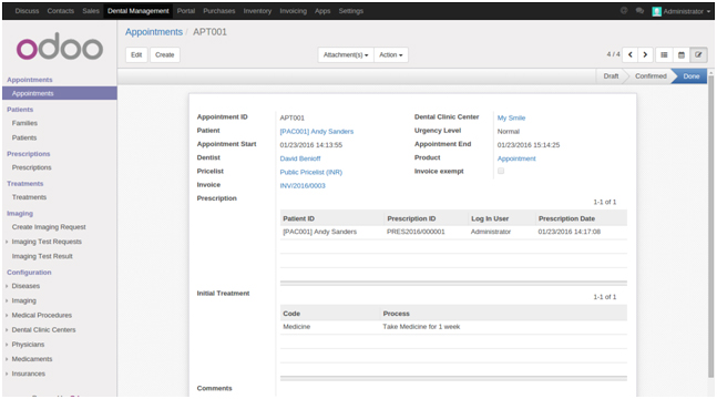 1. User can Create Patient with information like General Information, Diseases History, Medication given so far, Appointment History, Patient Treatment Details etc.