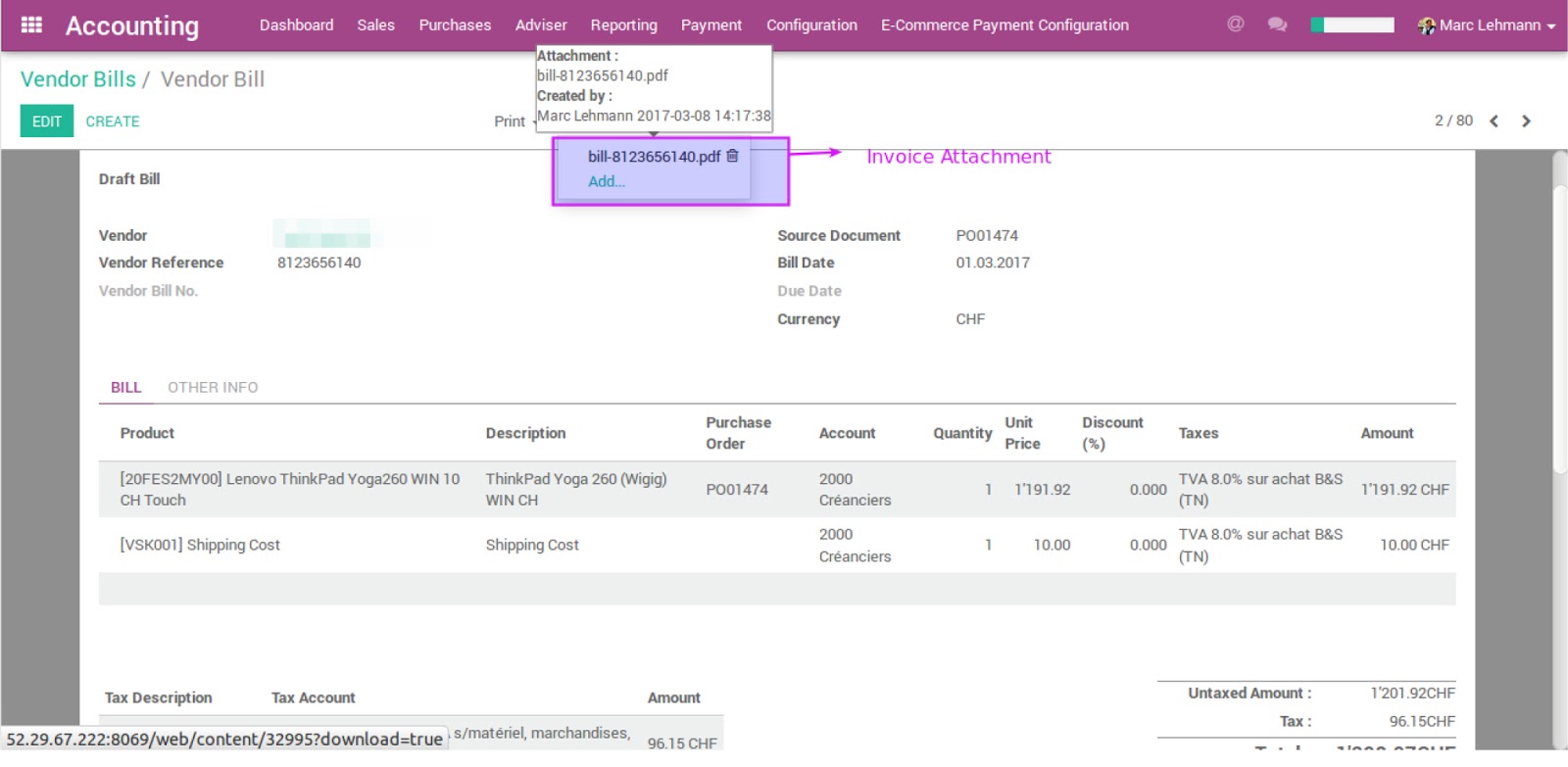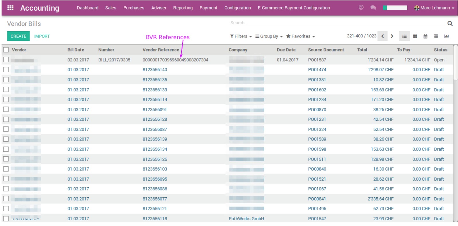 Odoo 9 – Import Vendor Bills from Post-Finance