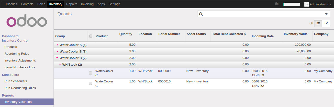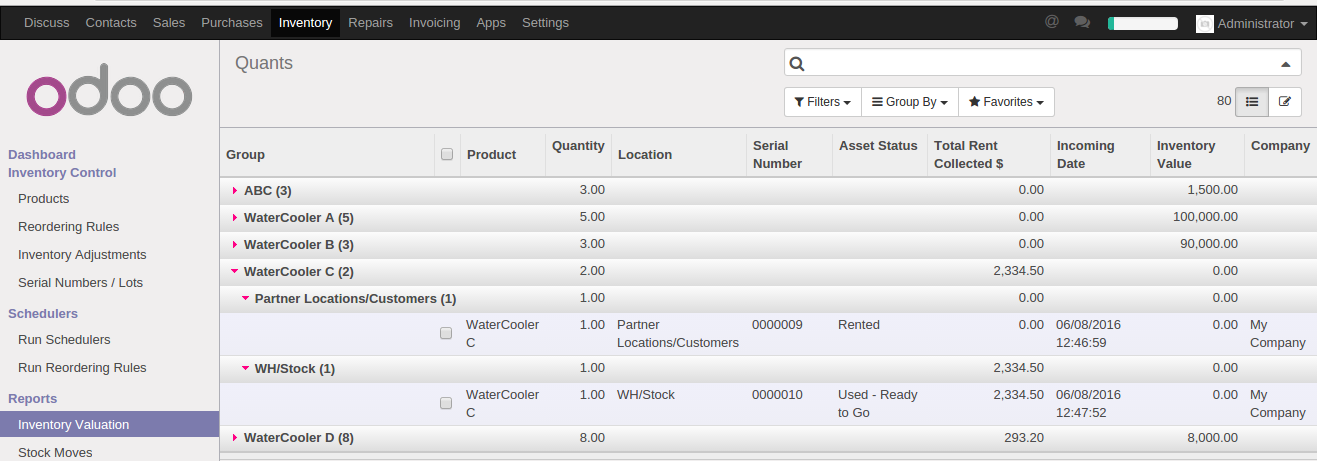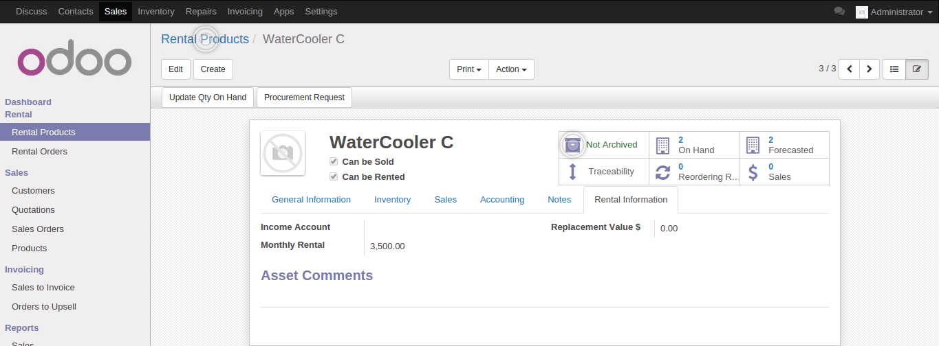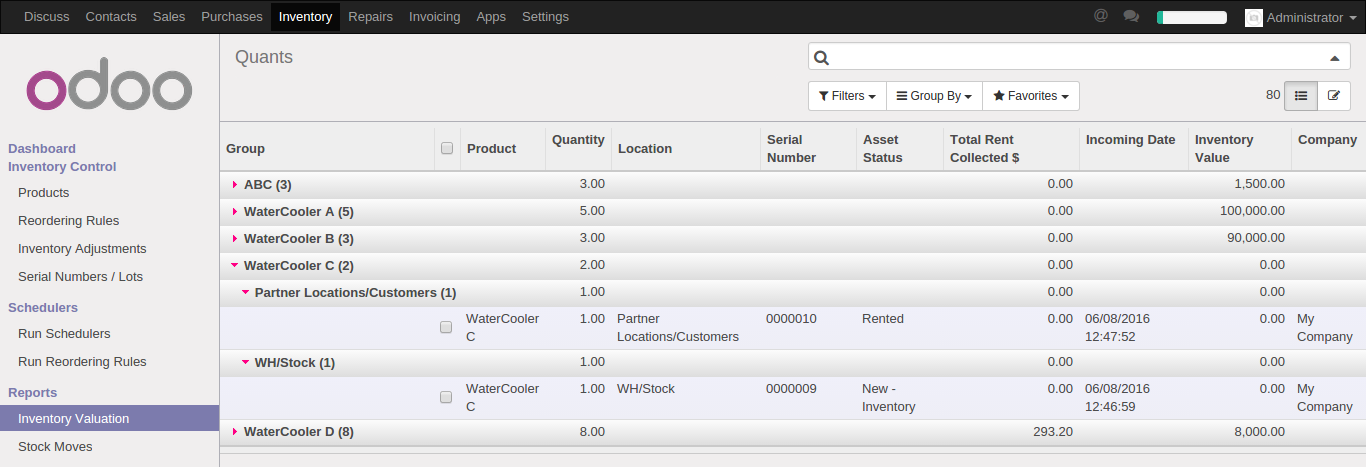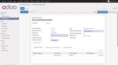 Major feature is ease of operation or creation of rental agreement documented generation through the module itself and quick order creation from Quant object in new Odoo WMS
