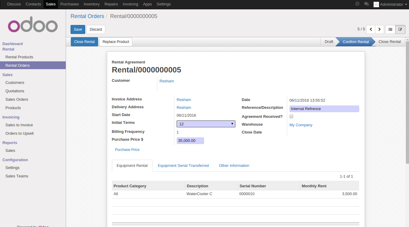 1. Rental order creation and confirmation with serial no