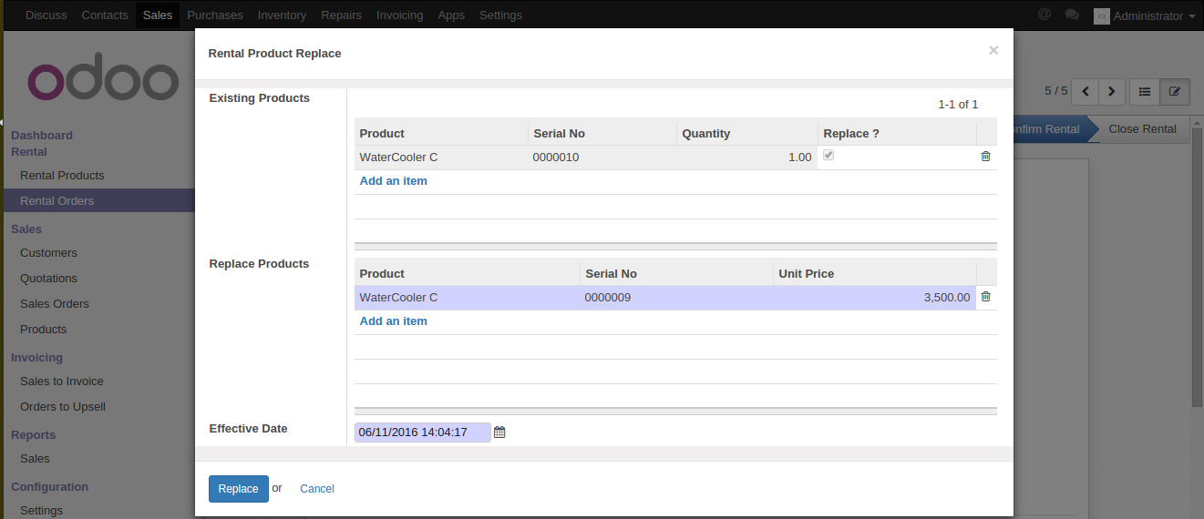 5. Replace the existing rented product with alternate or new product