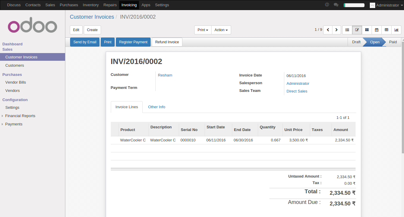 It also facilitates to analyse the equipment or product ROI based on Total Rent Collected for a specific period which is updated based upon the payment received against the invoice raised.