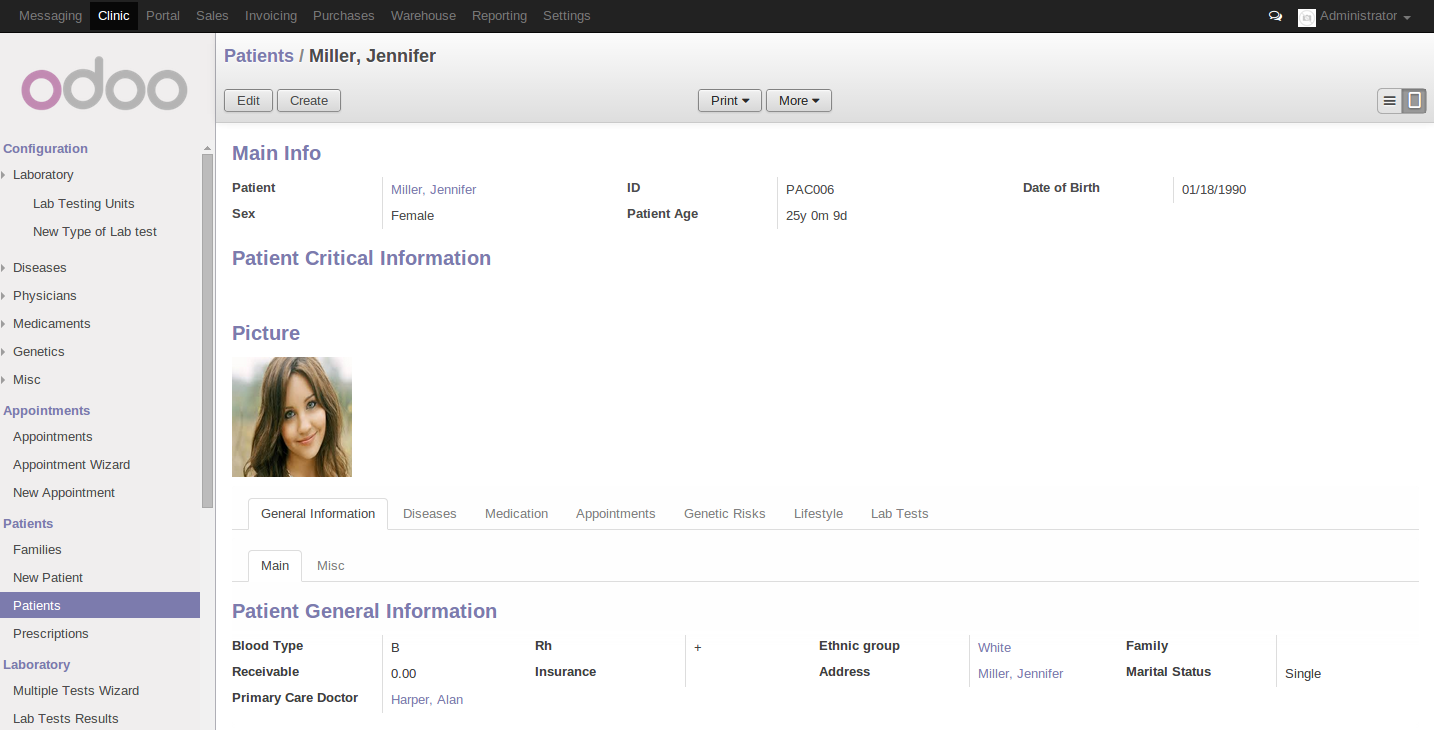Deatiled patient record is maintained in the system where genetic information , appointment history , life style details , lab test details etc of the patient is maintained.