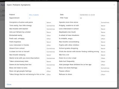 4. Related Pediatric Symptoms checklist evaluations can be added in the Appointments.