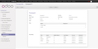 Information regarding the transportation facility provided by the school/college is managed. The routes of the transportation facility as well as the information of vehicle and the driver is also managed.