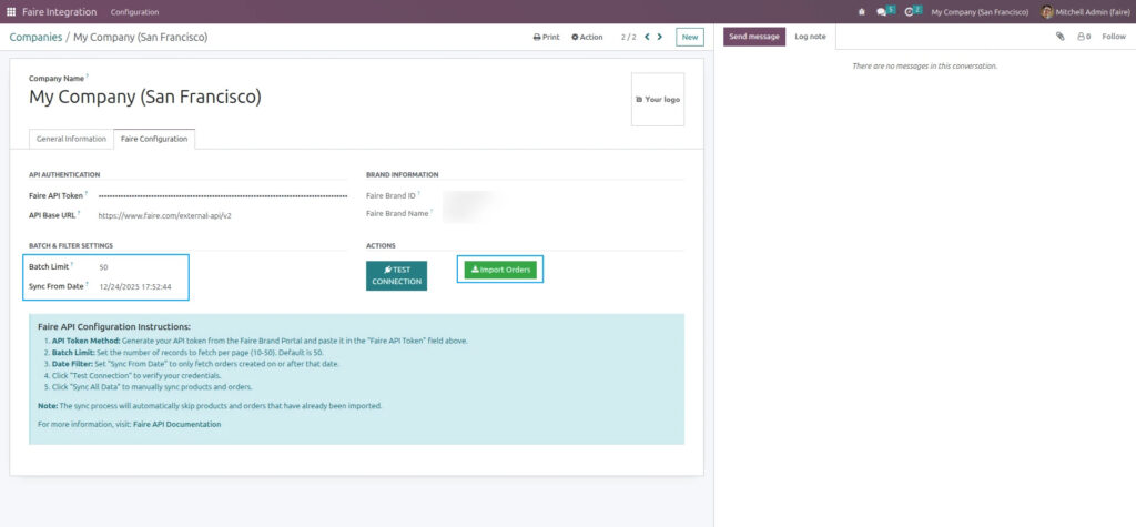 Compatible with Odoo 16 Community & Enterprise, this module connects directly with the Faire Wholesale API V2 and enables structured synchronization between Faire and your backend system.
