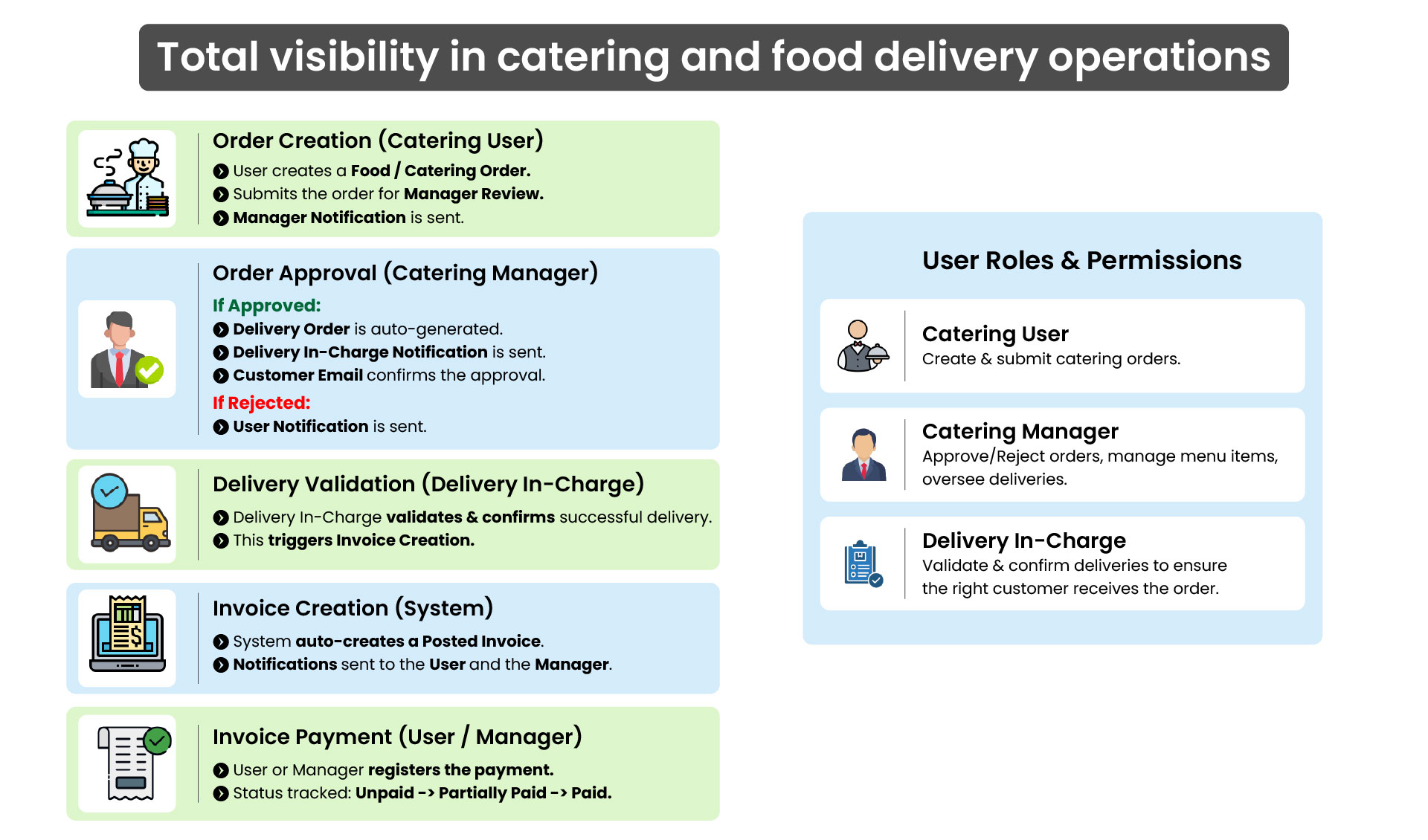 Total visibility in catering and food delivery operations