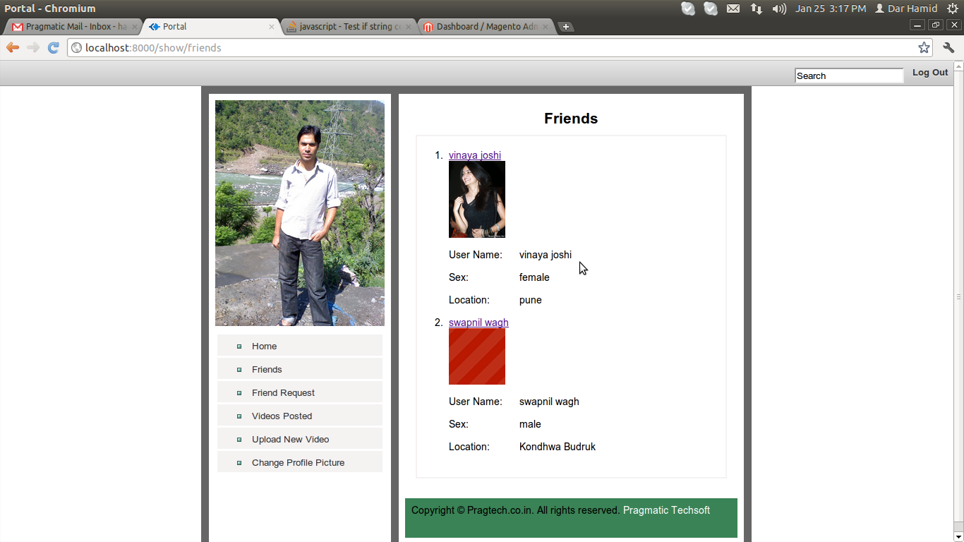 3. Click on the friends tab to view your friends. Click on any friend to view the full profile of your friend along with the his/her geolocation.