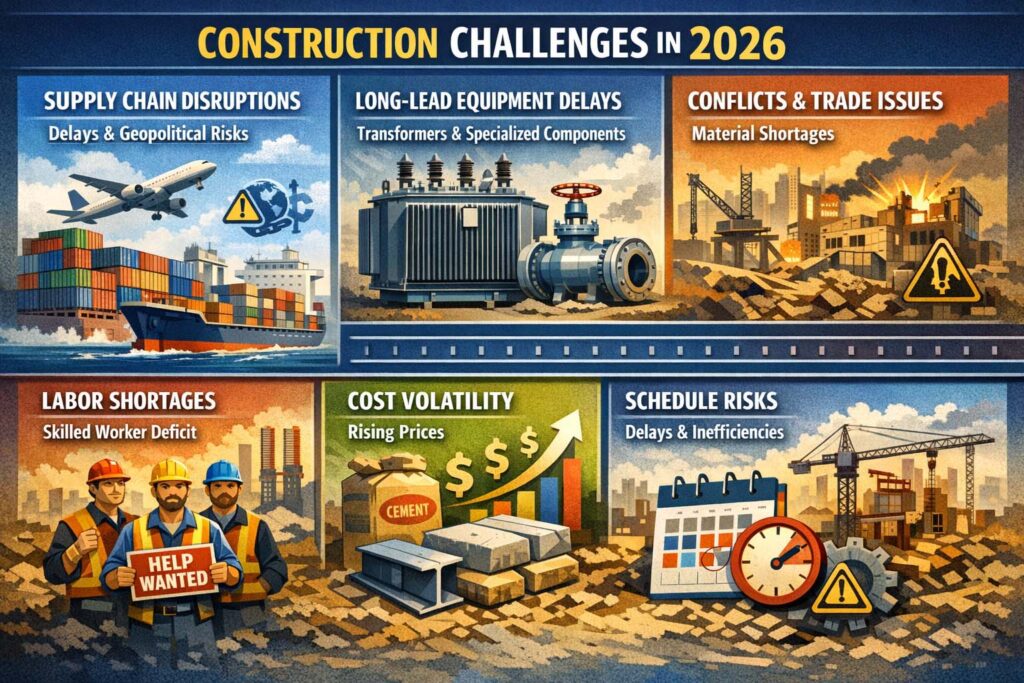 Even in 2026, long-lead items such as transformers, specialized equipment and imported components are subject to delays caused by geopolitical instability and logistics constraints.