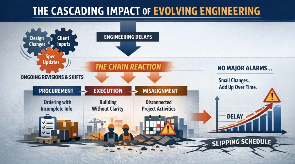 In many projects, engineering is no longer a clearly defined phase that concludes before procurement and execution begin. Instead, it continues to evolve as the project progresses. Design changes, client inputs and specification updates are introduced even after downstream activities have been scheduled.